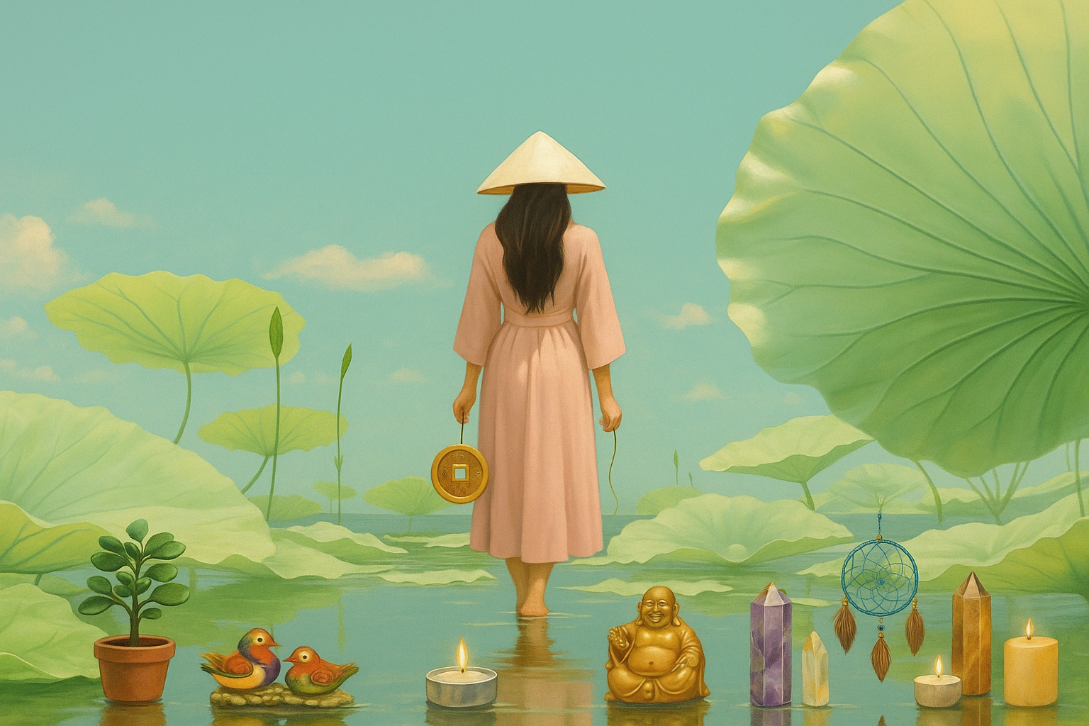 Но стоит чуть подвинуть лампу, протереть жабу, повесить музыку ветра, поджечь свечу – и реальность подмигнёт. Потому что фэншуй всегда отвечает тем, кто готов слышать.